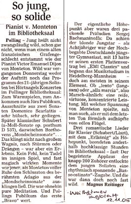 "...Das klingt nicht nach großem Wagnis, nach Stürmen oder Drängen – war aber ein Erlebnis. Kein Fehl, kein Tadel im innigen Spiel, und fast magisch wirkten Momente wie jener, wie Monteton voller Ruhe den Schlusston des berühmten Adagio aus der „Mondscheinsonate“ ausklingen ließ. Das war ohnehin pure Meditation. Und Pollings Publikum das erste „Bravo“ wert..."
