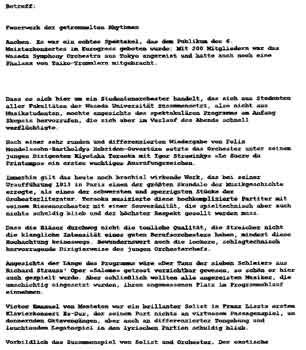 "...Victor Emanuel von Monteton war ein brillianter Solist in Franz Liszts erstem Klavierkonzert Es-Dur, der seinem Part nichts an virtuosen Passagenspiel, an donnernden Oktavengängen, aber auch an differenzierter Tongebung und leuchtendem Legatospiel in den lyrischen Partien schuldig blieb..."