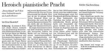 "...Im engen Zusammenwirken mit dem Orchester brachte er den heroischen Duktus des Werkes voll zur Geltung, mit seinem improvisationsähnlichen Arpeggienläufen und der herrlich glänzenden imperatorischen Thematik Beethovens..."